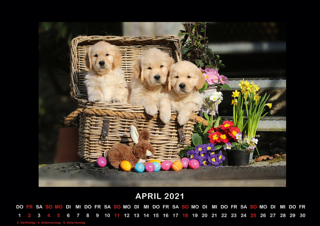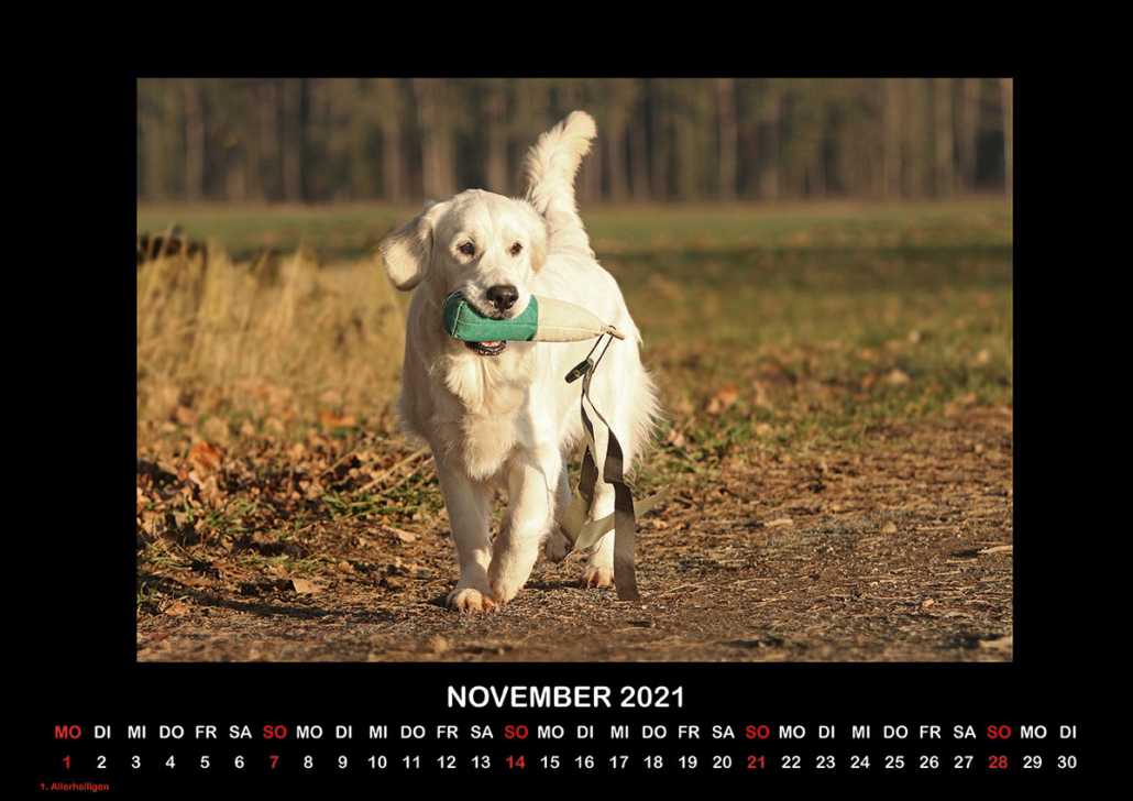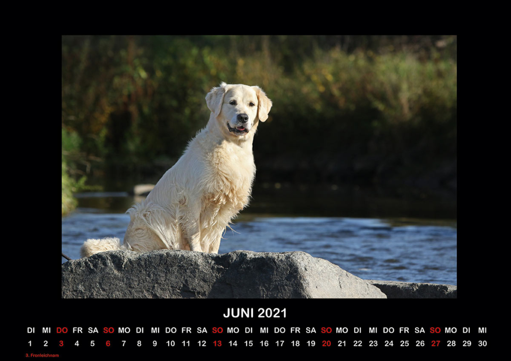 Seit vielen Jahren gebe ich nun schon einen Golden Retriever Kalender heraus, der sich großer Beliebtheit erfreut. Der Preis beträgt 20 € plus Porto und Verpackung. Gerne können Sie den Kalender aber auch auf Ausstellungen, auf denen ich öfters zu finden bin, erwerben.